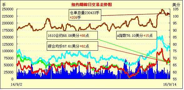 周三紐約期棉繼續(xù)反彈,主力合約重回67美分以上;1612合約收于67.53美分/磅,漲63點;1703合約收于67.74美分/磅,漲63點。當(dāng)日開盤時主力合約延續(xù)了周二的震蕩走勢,但最終在買盤的支撐下走高,當(dāng)日主力合約依然在周二的震蕩區(qū)間內(nèi)交投。市場預(yù)期美棉出口強勁,本年度前四周平均每周簽約陸地棉28.37萬包,遠大于USDA出口預(yù)測,并高于去年同期。本年度由于美棉產(chǎn)量增加,雖然全球棉花貿(mào)易量下降,但其中美棉的份額增加,為2010/11年度以來最高。