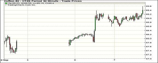 周三紐約期棉延續(xù)前一日漲勢,合約價小幅上漲;1612合約收于69.54美分/磅,漲30點;1703合約收于69.76美分/磅,漲37點。當(dāng)日主力合約開盤后走勢缺乏方向,盤中受一些買盤支撐使合約價保持在漲幅區(qū)間,收盤前合約上漲,最高價創(chuàng)近13個交易日來新高。近來美國多個棉區(qū)受熱帶風(fēng)暴影響,旱情得到緩解,但也有洪澇的威脅,已形成颶風(fēng)的熱帶風(fēng)暴牛頓于7日給德州帶來強(qiáng)降雨,并將在當(dāng)?shù)貢r間8日推進(jìn)到亞利桑那州。