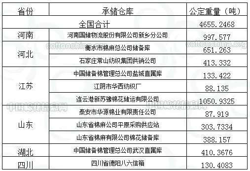 錦橋紡織網(wǎng)—資訊頻道> 棉花信息> 拋儲>正文 10月12日兵團棉花競賣預告:計劃投放4655.2468噸