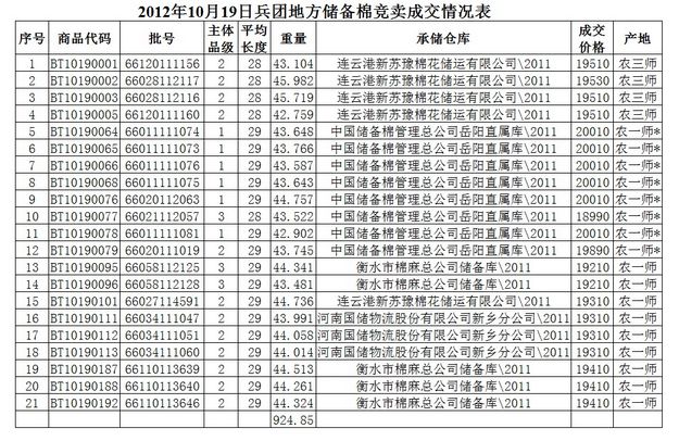 10月19日兵團(tuán)棉花競(jìng)賣成交結(jié)果