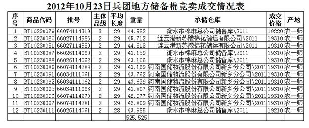 10月23日兵團(tuán)棉花競(jìng)賣(mài)成交結(jié)果