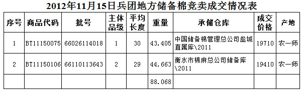 11月15日兵團(tuán)棉花競賣成交結(jié)果