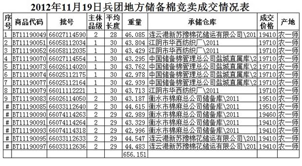錦橋紡織網(wǎng)—資訊頻道> 棉花信息> 拋儲>正文 11月19日兵團棉花競賣成交結果