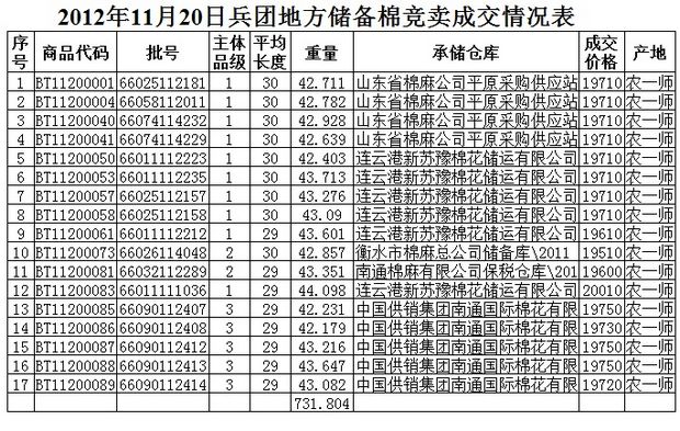 11月20日兵團棉花競賣成交結(jié)果