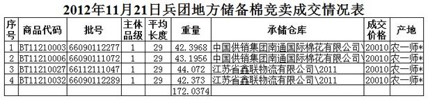 11月21日兵團(tuán)棉花競(jìng)賣成交結(jié)果
