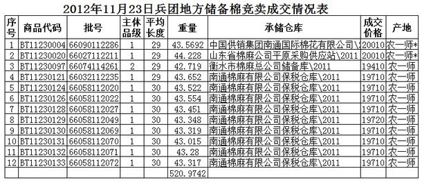 11月23日兵團(tuán)棉花競賣成交結(jié)果