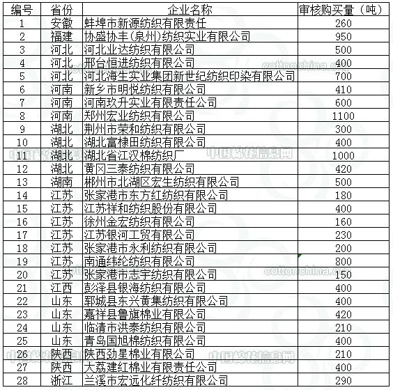 錦橋紡織網(wǎng)—資訊頻道> 棉花信息> 拋儲>正文 2012年儲備棉投放競買紡織企業(yè)名單和競買數(shù)量(第十六批)