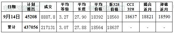 儲備棉投放日評(9.14):均價下行 成交比例不足兩成