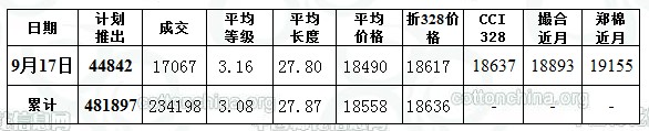 儲(chǔ)備棉投放日評(píng)(9.17):成交比例回升 均價(jià)反彈