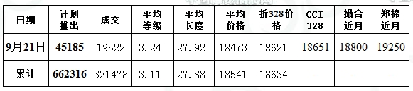 儲(chǔ)備棉投放日評(píng)(9.21):品級(jí)長(zhǎng)度雙降 成交比例下滑