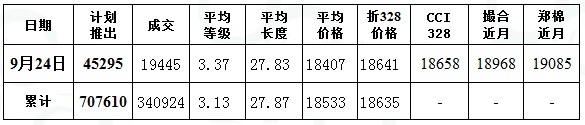 儲備棉投放日評(9.24):品級長度雙降 四級成交比例放大