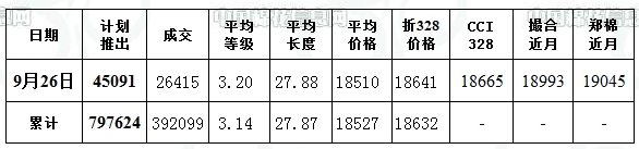 儲(chǔ)備棉投放日評(píng)(9.26):成交比例持續(xù)回升 品級(jí)長(zhǎng)度雙降