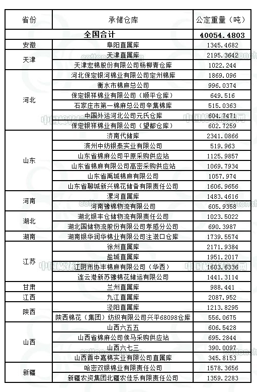 錦橋紡織網(wǎng)—資訊頻道> 棉花信息> 拋儲>正文 9月4日儲備棉投放預(yù)告:計劃投放40054噸