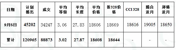 儲備棉投放日評(9.5):單捆成交價新高 均價較昨下跌