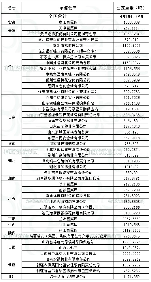 定于9月7日出庫銷售儲備棉45184.498噸,相關批次公檢數(shù)據(jù)見附件。具體庫點如下: