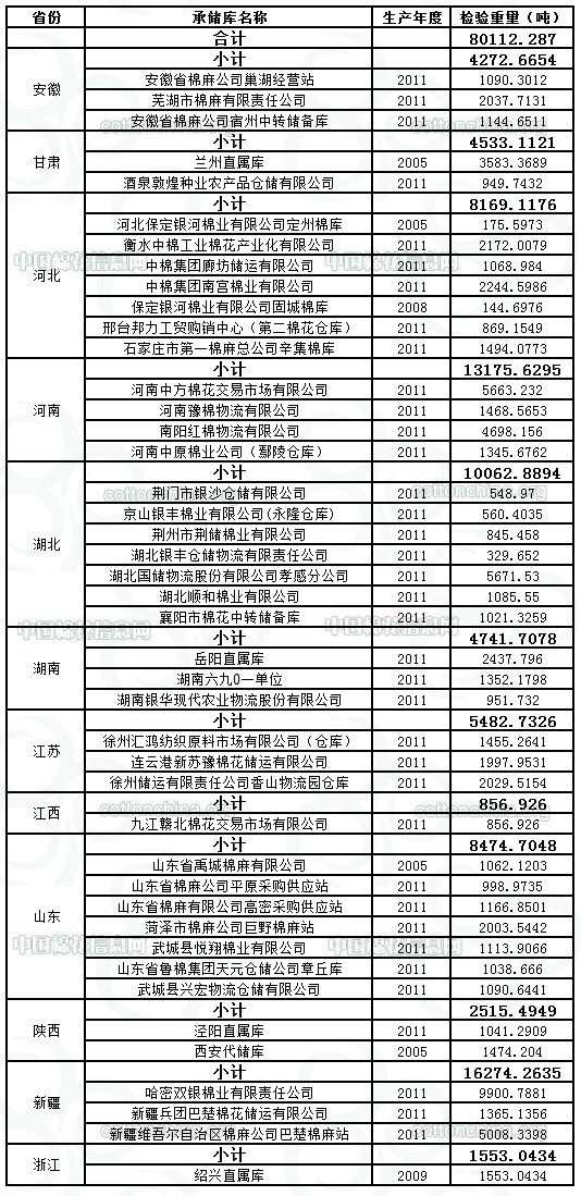 定于1月29日出庫(kù)銷售儲(chǔ)備棉80112.2870噸,相關(guān)批次公檢數(shù)據(jù)見附件。具體庫(kù)點(diǎn)如下: