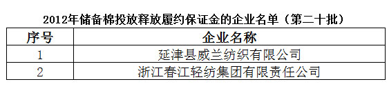 2012年儲備棉投放釋放履約保證金的企業(yè)名單(第二十批)