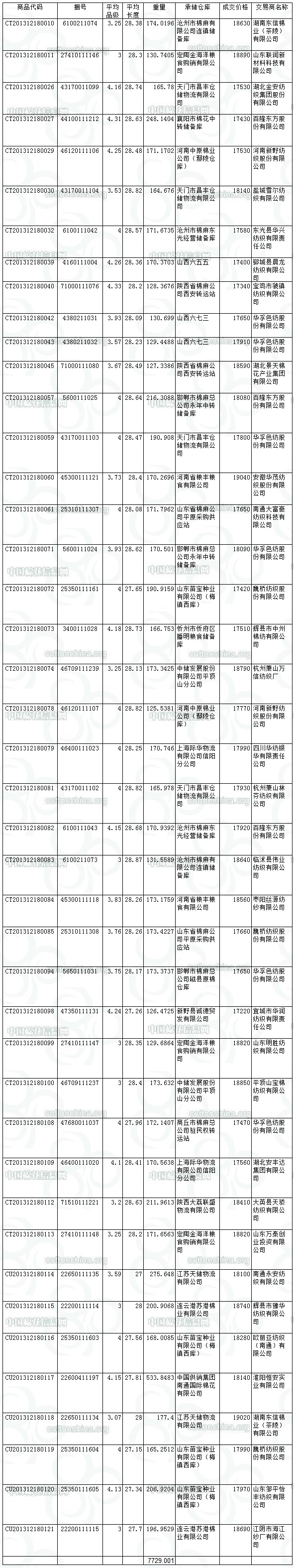 12月18日儲(chǔ)備棉投放成交結(jié)果