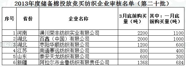 2013年度儲備棉投放競買紡織企業(yè)審核名單(第二十批)