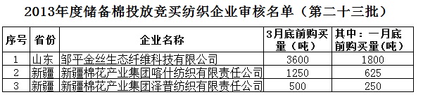 2013年度儲備棉投放競買紡織企業(yè)審核名單(第二十三批)