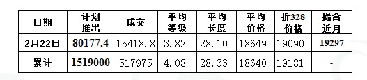 儲備棉投放日評(2.22):成交比例再降 均價(jià)繼續(xù)回落