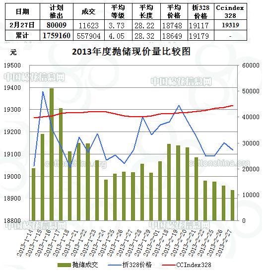 儲備棉投放日評(2.27):競拍企業(yè)減少 成交比例下降