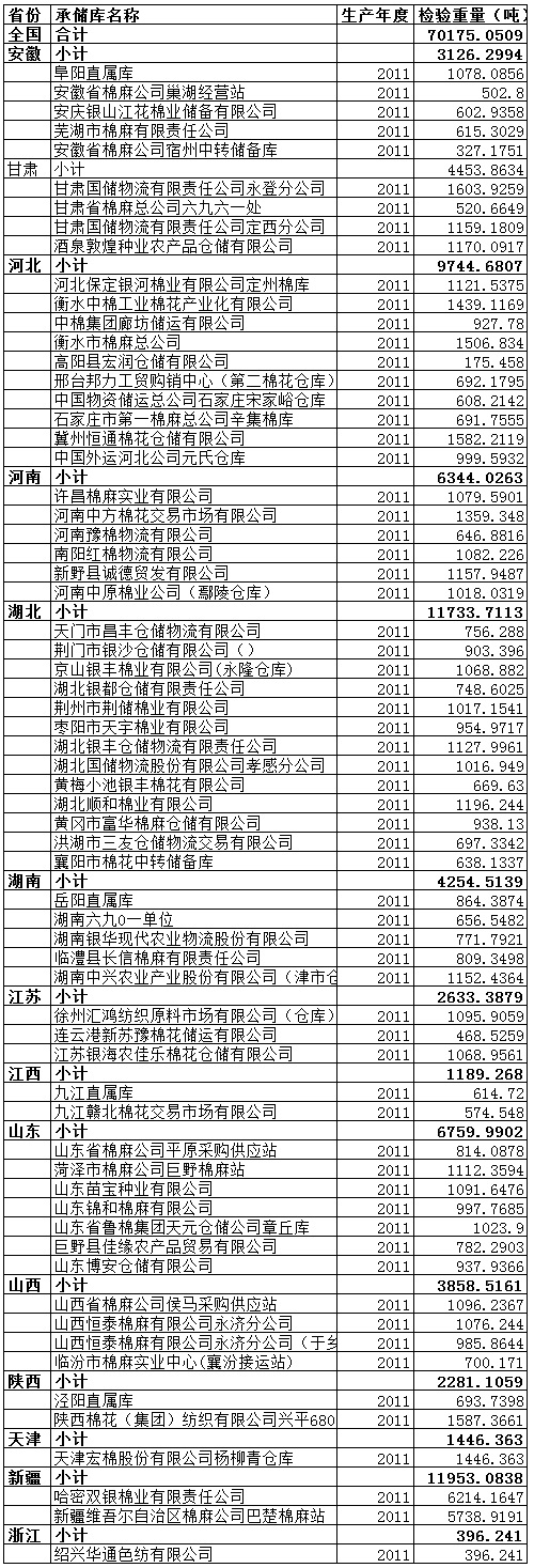 中國儲備棉管理總公司定于3月18日出庫銷售儲備棉70175.0509噸,相關(guān)批次公檢數(shù)據(jù)見附件。具體庫點如下: