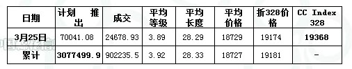 儲備棉投放日評(3.25):成交比例續(xù)升 競拍價格回落