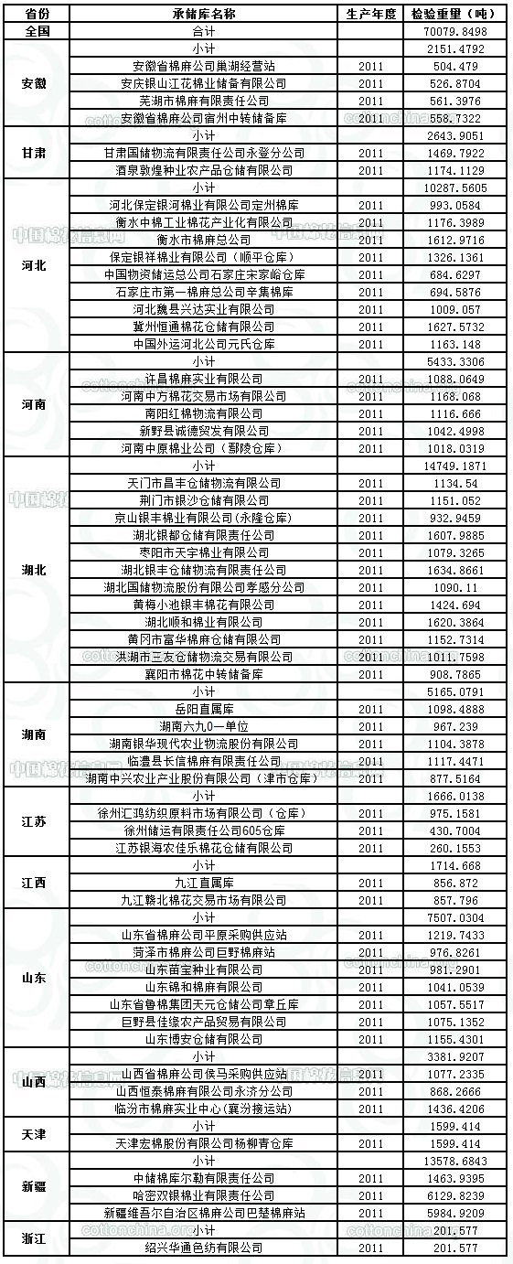 各紡織企業(yè): 定于3月28日出庫(kù)銷售儲(chǔ)備棉70079.8498噸,相關(guān)批次公檢數(shù)據(jù)見(jiàn)附件。具體庫(kù)點(diǎn)如下: