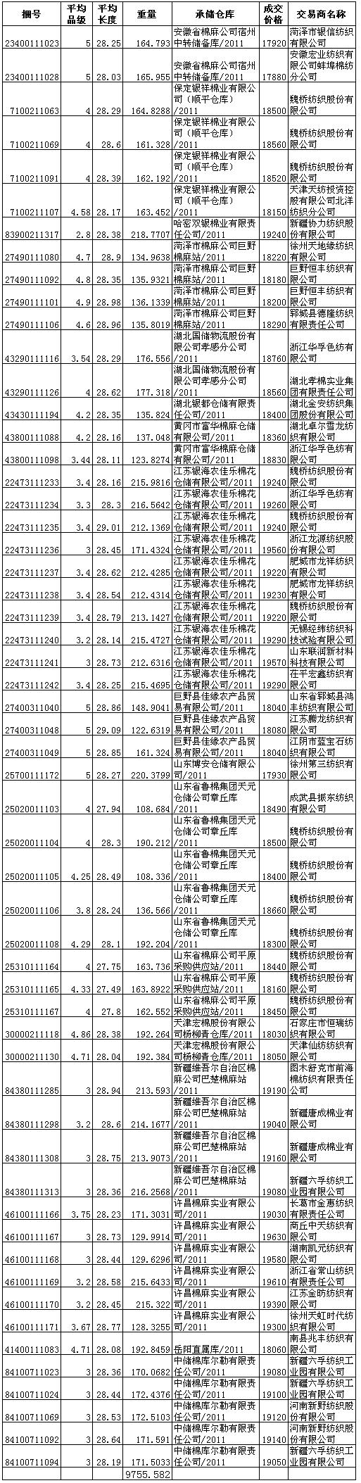 錦橋紡織網(wǎng)—資訊頻道> 棉花信息> 拋儲>正文 4月10日儲備棉投放成交結(jié)果