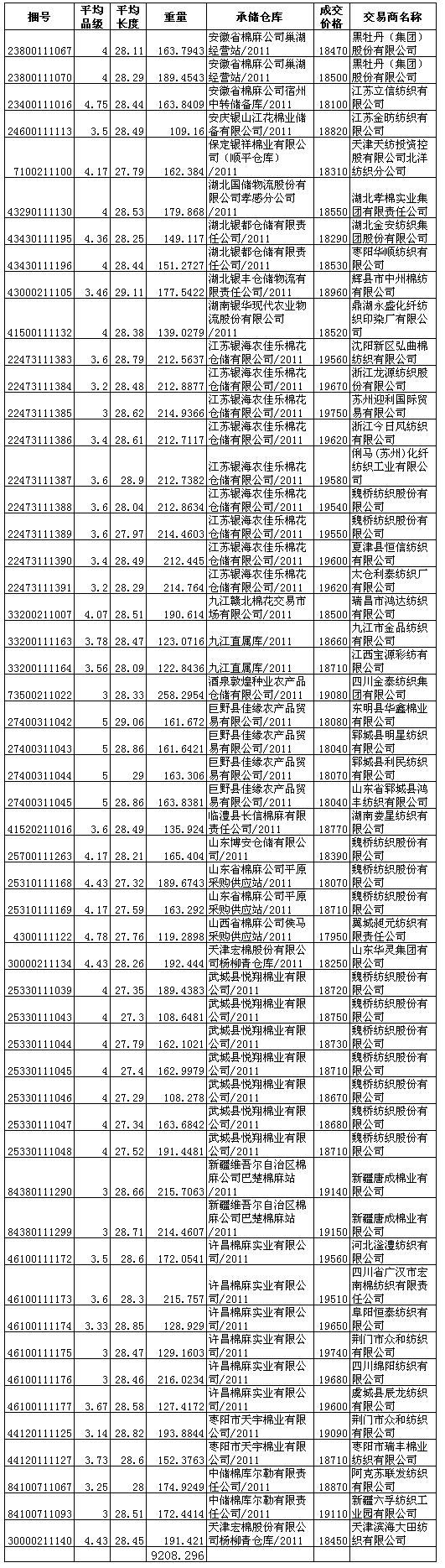 錦橋紡織網(wǎng)—資訊頻道> 棉花信息> 拋儲>正文 4月11日儲備棉投放成交結(jié)果