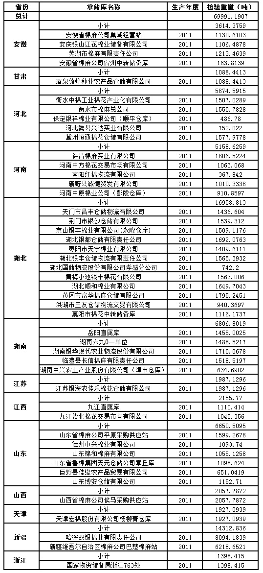 中國儲備棉管理總公司定于4月17日出庫銷售儲備棉69991.1907噸,相關(guān)批次公檢數(shù)據(jù)見附件。具體庫點如下: