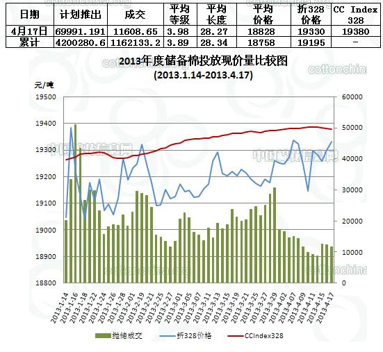 儲備棉投放日評(4.17):成交比例小幅下降 最高價突破2萬元/噸