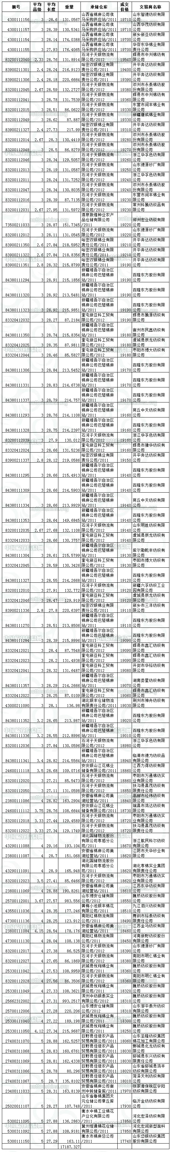 4月19日儲(chǔ)備棉投放成交結(jié)果