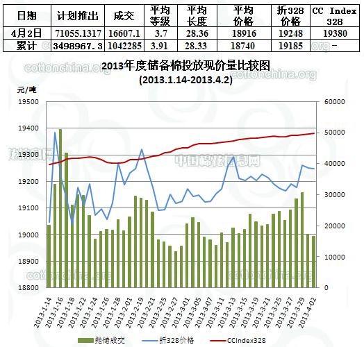 儲備棉投放日評(4.2):成交比例略降 價格維穩(wěn)