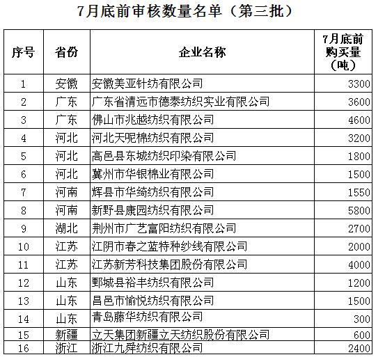 2013年儲備棉投放7月底前審核競買紡織企業(yè)名單(第三批)