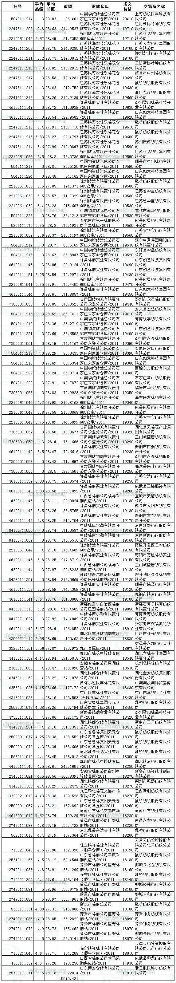 4月7日儲(chǔ)備棉投放成交結(jié)果