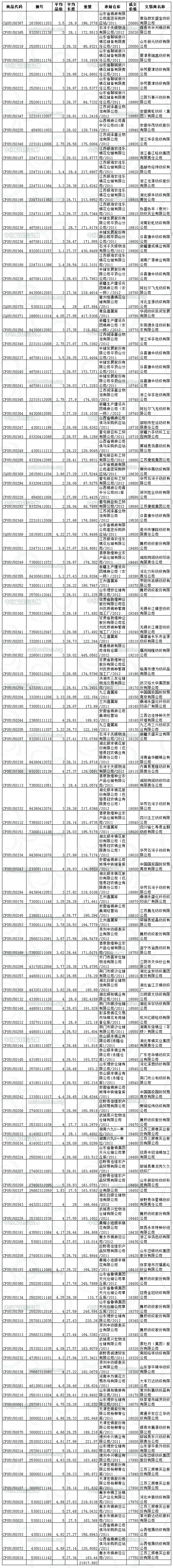 5月15日儲備棉投放成交結果