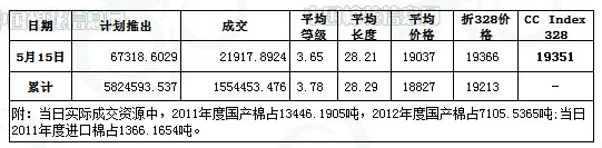 儲(chǔ)備棉投放日評(píng)(5.15):投放數(shù)量縮減 均價(jià)續(xù)漲