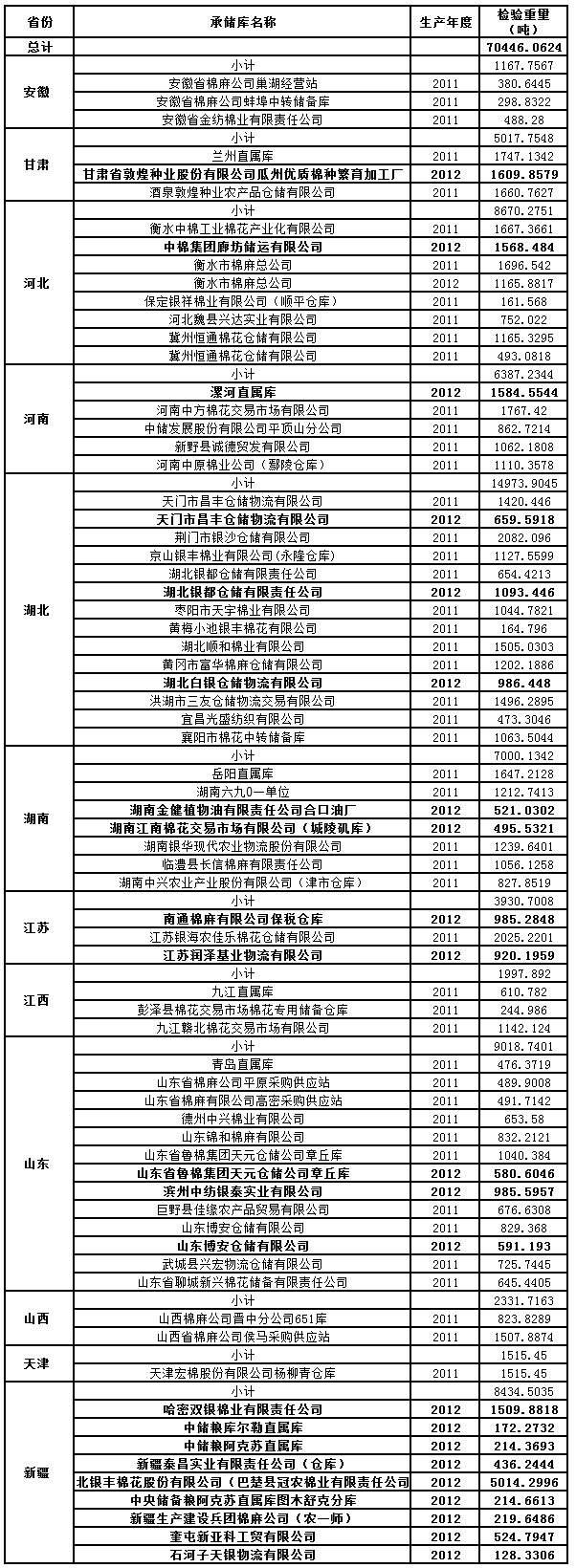 中國儲備棉管理總公司定于5月17日出庫銷售儲備棉70446.0624噸,相關(guān)批次公檢數(shù)據(jù)見附件。具體庫點如下: