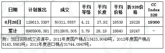 儲備棉投放日評(6.28):成交比例回升 日成交量超5萬