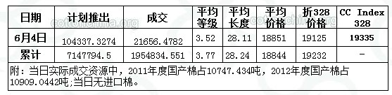 儲備棉投放日評(6.4):品級回升 成交比例下降