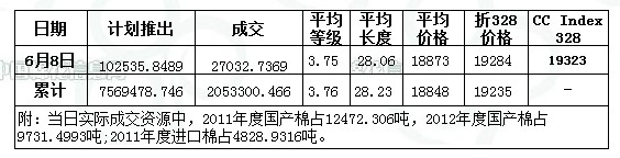 儲備棉投放日評(6.8):12年度成交回升 均價小幅回落