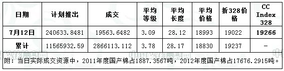儲備棉投放日評(7.12):品級提升 競拍微回暖