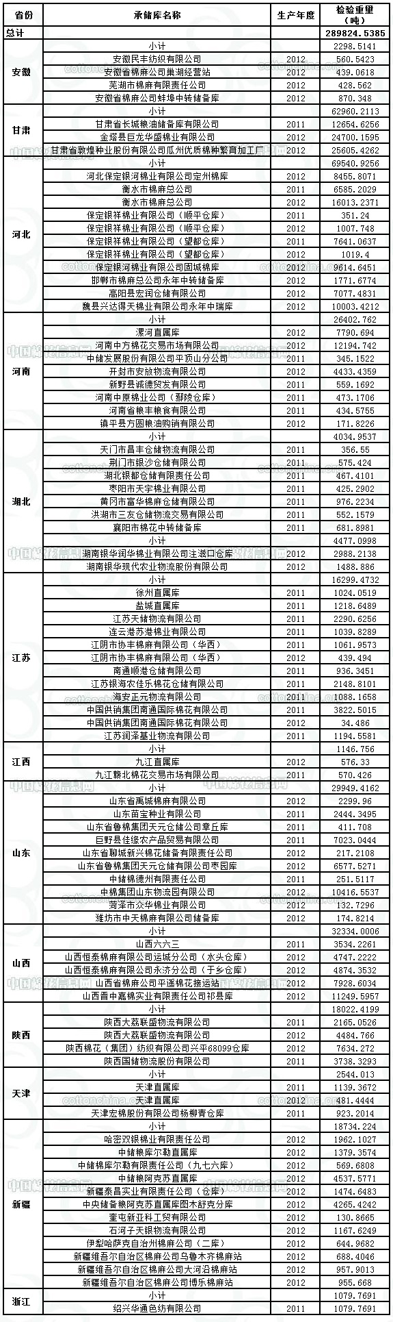 中國儲備棉管理總公司定于7月15日出庫銷售儲備289824.5385噸。具體庫點如下: