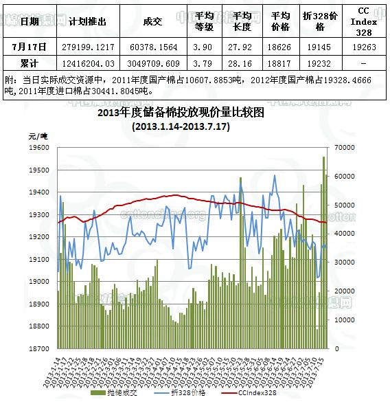 儲備棉投放日評(7.17):進口棉成交比例下降 累計總成交量305萬噸