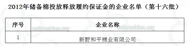 2012年儲備棉投放釋放履約保證金的企業(yè)名單(第十六批)
