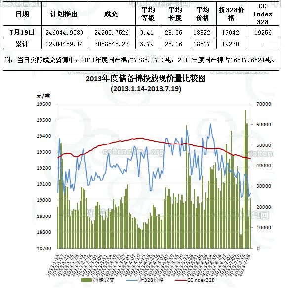 儲備棉投放日評(7.19):成交比例小幅回升 折328價基本持平