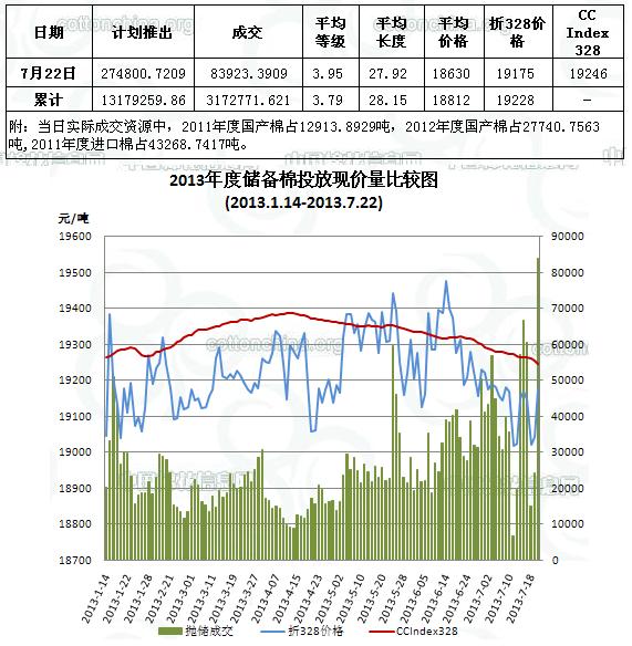 儲備棉投放日評(7.22):成交比例上升 成交量8.4萬噸