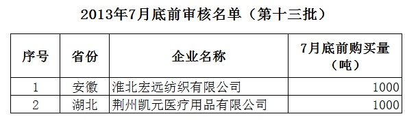 2013年儲(chǔ)備棉投放7月底前審核競(jìng)買(mǎi)紡織企業(yè)名單(第十三批)
